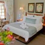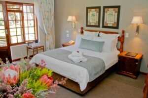 Eight Bells Mountain Inn is a proudly South African-owned and family-run resort hotel set in a picturesque mountain landscape at the foot of the Robinson Pass in the Outeniqua Mountains, just outside of Mossel Bay. We are a full-service, four-star hotel situated on a beautiful 160-hectare estate with an on-site restaurant, as well as a variety of amenities and outdoor recreation facilities—including horseback riding, tennis, squash, swimming, lawn bowls, and hiking trails. We have 25 rooms, ranging from standard en-suite rooms and family units to log cabin-style chalets and thatched rondavels. Our beautiful gardens and mountain views provide an idyllic setting for weddings, special occasions, or retreats.